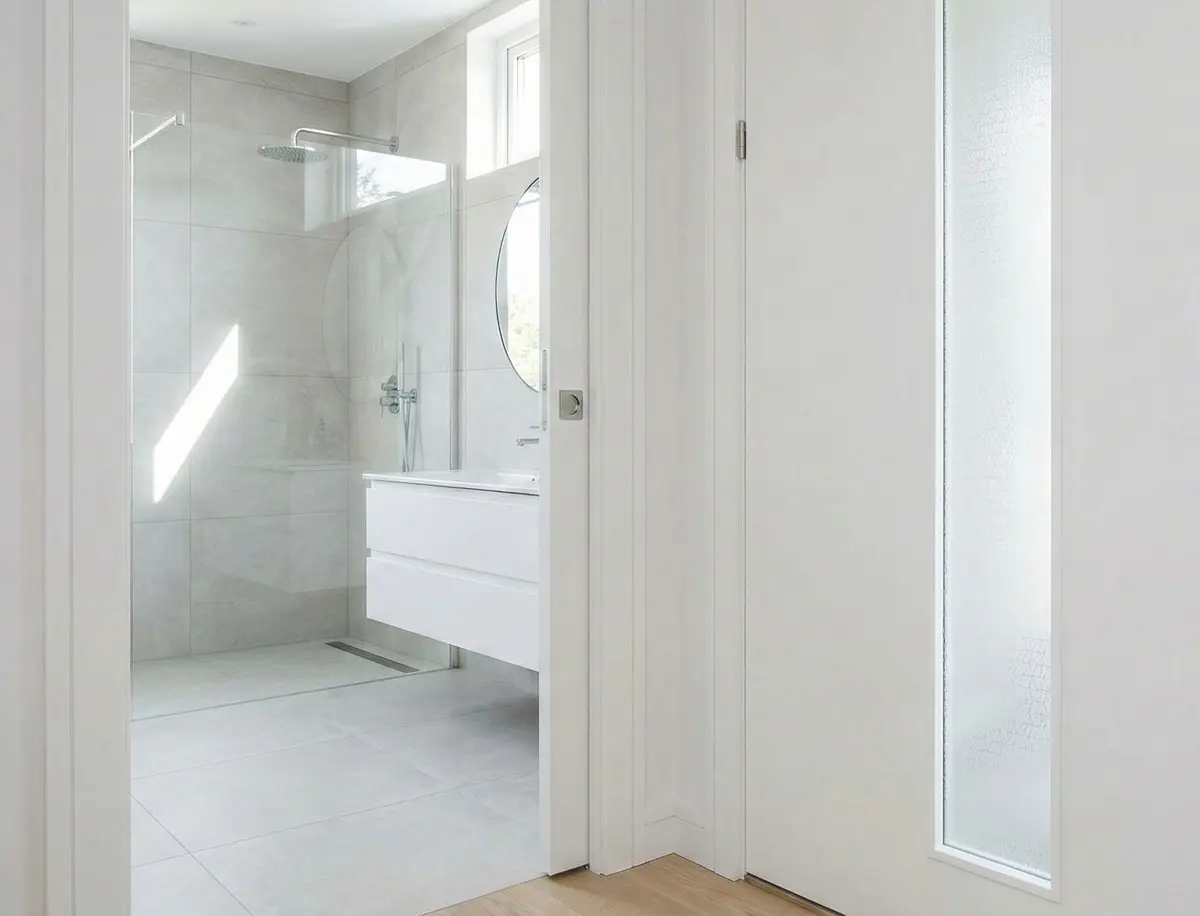 Drzwi przesuwne poruszają się równolegle do ściany po specjalnych prowadnicach, nie zajmując żadnej przestrzeni przy otwieraniu. To rozwiązanie, które w ostatnich latach zyskało ogromną popularność, szczególnie w nowoczesnych aranżacjach inspirowanych stylem loft, minimalistycznym czy skandynawskim. Ich estetyka jest subtelna i dyskretna – skrzydło może dosłownie znikać wzdłuż ściany, nie dominując w pomieszczeniu.