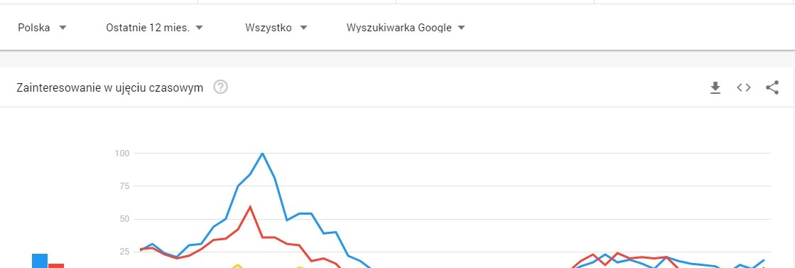 1) Wakacje w Polsce – pomimo ogromnego spadku w ostatnich tygodniach widać wyraźne odbicie w ostatnich dniach i nie jest to związane z ostatnimi wypowiedziami Ministra Zdrowia. Tutaj szanse widać dla wielu hoteli, które są w stanie zawalczyć o konsumenta wyjeżdzającego do tej pory za granicę. Jeśli przyjrzymy się okresowi sprzed roku, to potencjał wyszukiwania tej frazy jest mniejszy o zaledwie 20%, co w dzisiejszych realiach jest naprawdę świetnym wynikiem.