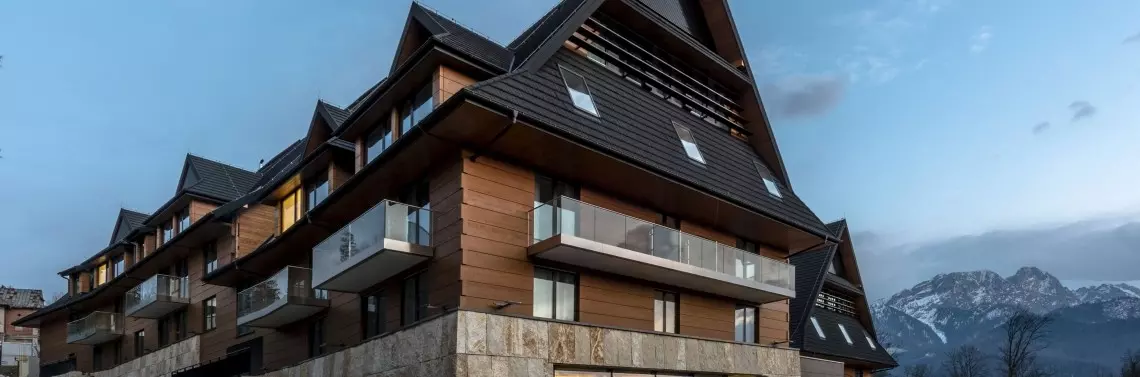 Położenie w spektakularnym miejscu i design z ukłonem w stronę zakopiańskich tradycji architektonicznych wyróżnia Radisson Blu Hotel & Residences na tle innych tego typu obiektów. Góralska estetyka, dominujące elementy drewniane w połączeniu z surowym kamieniem idealnie komponują się z naturalnym krajobrazem. Nowoczesne przeszklenia i spadziste dachy w antracytowych odcieniach nadają konstrukcji nowoczesny wygląd, a w trosce o komfort akustyczny oraz eliminację mostków termicznych przy konstrukcjach balkonowych wykonawca zdecydował o wykorzystaniu rozwiązań firmy Schöck.