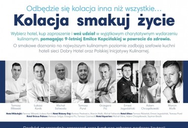 Zapraszamy serdecznie do wzięcia udziału w wyjątkowym charytatywnym wydarzeniu "Kolacji Smakuj Życie", która odbędzie się 5 kwietnia o godz. 18:00 w 5 hotelach sieci Dobry Hotel zlokalizowanych od Bałtyku do Tatr. Z pewnością każdy znajdzie swoją ulubioną destynację, bowiem do wyboru są: Mikołajki,